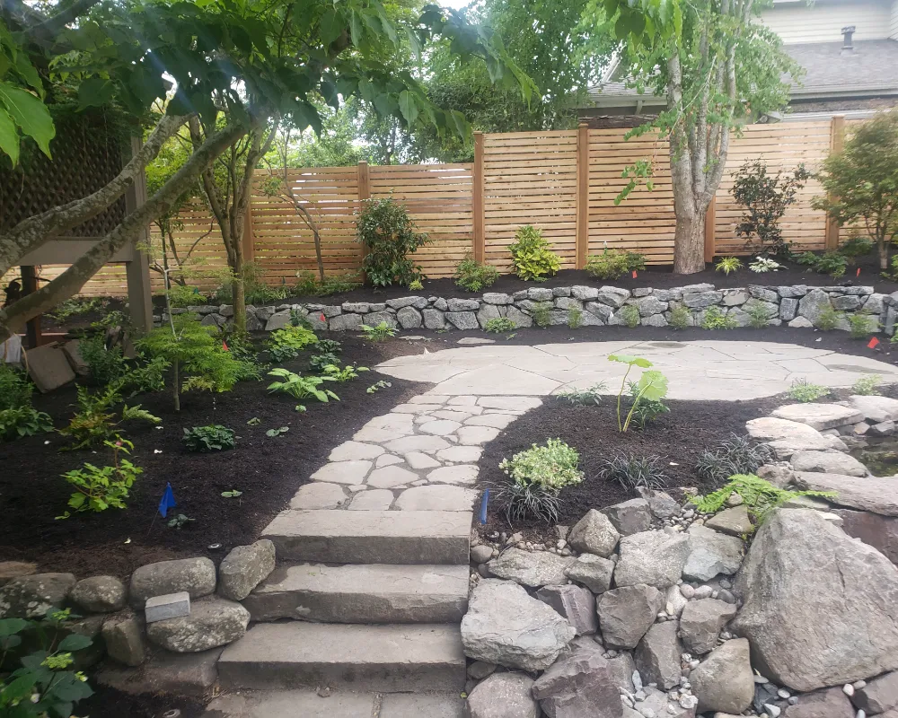 Greenleaf Landscaping & Construction has been providing professional mulch installation services across Shoreline, Seattle, Bellevue, Bothell, Edmonds, Kirkland, Lynnwood, and surrounding areas. We install a variety of mulch types to suit your landscape—whether you need shredded hardwood, dyed mulch, or natural bark. Our team delivers clean, even coverage that improves plant health, enhances curb appeal, and reduces maintenance.